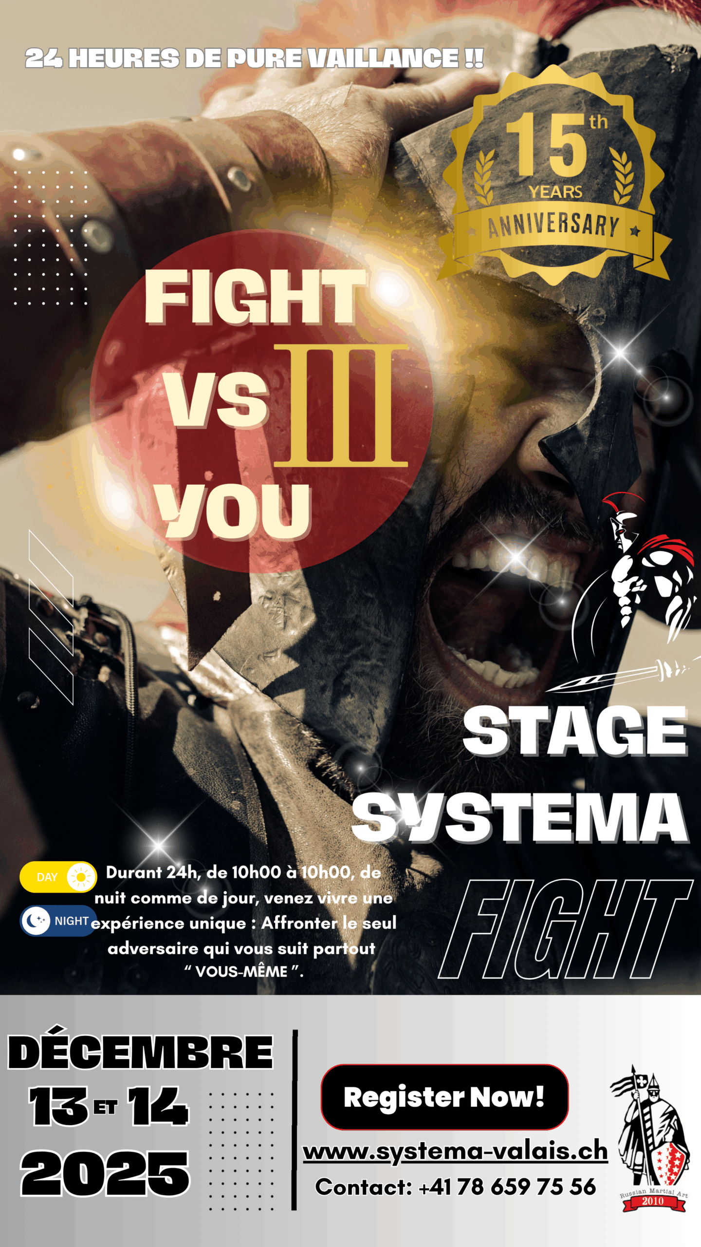 Seien Sie zum Schuljahresstart am 1. September 2025 dabei! Systema? Eine Kampfkunst für jedermann! Workshops, Vorführungen, Kurse und Gruppenkurse zur russischen Massage für Erwachsene und Kinder. Entdecken Sie eine Vielzahl von Kursen mit Schwerpunkt auf Mobilität, fortgeschrittener Atmung, unbewaffnetem Kampf und Waffenattrappen.